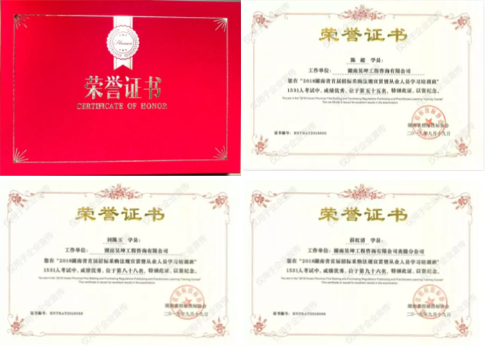 公司员工陈超、刘陈玉、薛红清在2018湖南省招标采购法规宣贯暨从业人员学习培训班中取得优异成绩