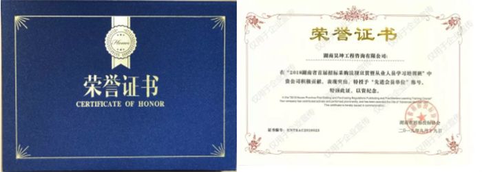 湖南昊坤工程咨询有限公司获得由湖南省招标投标协会授予的“先进会员单位”称号