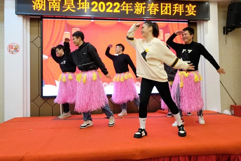 伴随着刘总的致辞,昊坤春晚在喜庆祥和的舞蹈《海草舞》中拉开了大幕。本次晚会节目精彩纷呈,高潮迭起,所有节目均由公司员工自编、自导、自演,为出席晚宴的昊坤家人献上了一场视听盛宴。