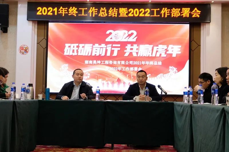 2022年1月22日上午9时,湖南昊坤2021年年终总结暨2022年工作部署会如期在华天精选酒店举行。会议以“砥砺前行、共赢虎年”为主题展开。公司董事长刘利果、党支部书记兼总经理黄坚以及各部门负责人、全体员工参加了会议。在这新春伊始、万物更新之际,我们相聚一堂,总结工作、统一思想、砥砺前行,以艰苦奋斗和锐意创新的精神,迎接全新的2022年。