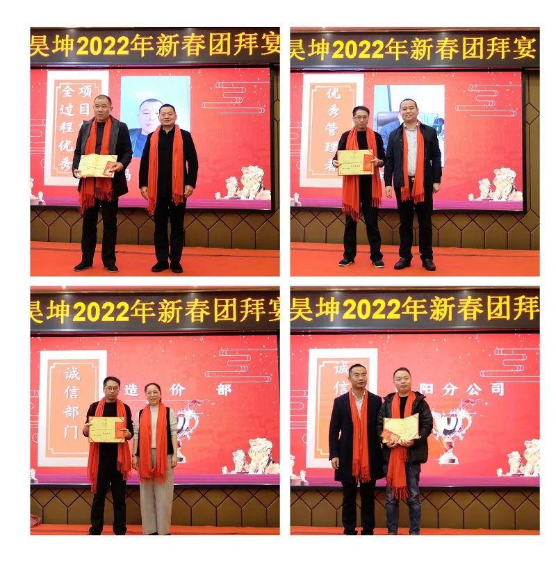随后,公司对2021年优秀分公司和优秀个人进行隆重表彰,颁发了“诚信分公司、优秀管理者、全过程优秀项目负责人、优秀员工奖、诚信员工奖、爱岗敬业和优秀新人奖”等多个奖项,不仅彰显出湖南昊坤始终重视公司文化的感恩传承,更展现了公司力求以先进文化和正能量引领公司发展的战略目标。
