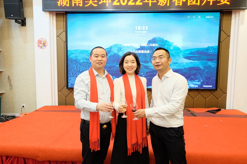 整个年会在和谐、温馨、激情、欢乐的气氛中圆满落下帷幕,展现了昊坤员工充满活力、积极向上、团结进取的精神面貌。晚宴上,在董事长刘总和总经理黄总的带领下,我们共同举杯,分享美酒佳肴,庆祝这欢乐的时刻,相信湖南昊坤在公司领导的带领下一定会有更加辉煌的明天。