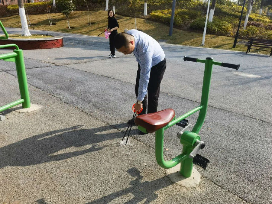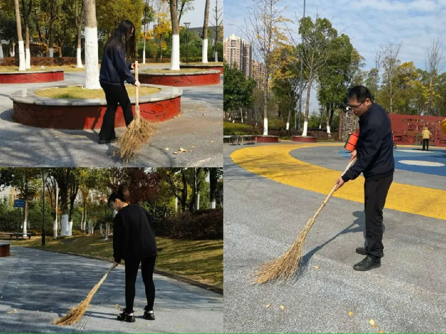 活动中,党员同志及志愿者带着事先准备好的扫把、火钳、垃圾袋等清理工具,对路面的树叶、塑料以及烟头纸屑等垃圾进行仔细清理。一次次弯下腰,一次次伸出手,不忽视每一片纸屑,将垃圾捡起放入到垃圾袋中。